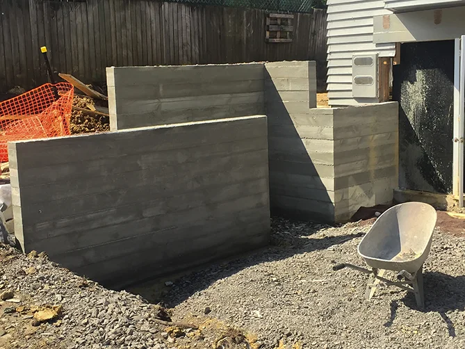 In- Situ concrete seems to be very popular at the moment. Its simplicity ticks a few boxes with: Strength; Durability; Thermal Mass; but also creates an aesthetically pleasing colour and texture. There are multiple design options that can be achieved from the deconstructed form process. In this case simple rough sawn boards have been used in the form work.